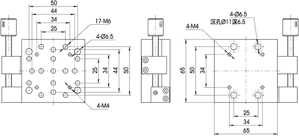 細牙螺桿或測微在平移臺側面放置,節省空間